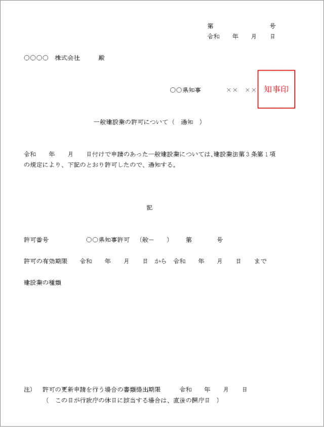 提出先の行政庁の審査を経て、晴れて建設業許可となり、知事等発行の「建設業許可通知書」がお客様宛に届きます。今後の手続きや注意点についてもご説明します。 更新や変更届など、取得後のサポートも継続して行います。